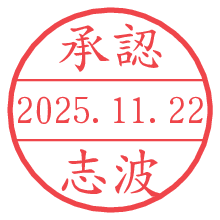 オプションの「電子透かし」をチェックし[生成]すると、見た目には分からないように、UNIXタイムスタンプを識別情報としてPNG形式の日付印に埋め込みます。 日付スタンプメーカーの使い方「部署」「名前」は最大8文字まで入力が可能です。「スタンプの色」を選択し、[生成]ボタン押下で印影画像が更新され、背景を透明に設定したPNG形式とPDF形式の印影画像がリンクからダウンロードできます。 オプションの「電子透かし」は、その性格上日付印ととても相性の良い付加サービスです。 別ページの「タイムスタンプと電子透かし」でも詳しく解説しますが、このオプションを追加することで、日付印が生成された日時に確かにその印が存在していることが証明されます。 ![]() 志波さんの電子印鑑が作れます。社内でのデータ書類閲覧確認用など、認印的な使い方のできる電子印鑑が作れます。 ![]() 古代文字で落款印が作れます。「落款スタンプメーカー」で作品を引き立たせる落款印が作れます。
