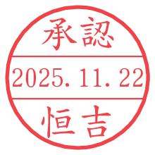 オプションの「電子透かし」をチェックし[生成]すると、見た目には分からないように、UNIXタイムスタンプを識別情報としてPNG形式の日付印に埋め込みます。 日付スタンプメーカーの使い方「部署」「名前」は最大8文字まで入力が可能です。「スタンプの色」を選択し、[生成]ボタン押下で印影画像が更新され、背景を透明に設定したPNG形式とPDF形式の印影画像がリンクからダウンロードできます。 オプションの「電子透かし」は、その性格上日付印ととても相性の良い付加サービスです。 別ページの「タイムスタンプと電子透かし」でも詳しく解説しますが、このオプションを追加することで、日付印が生成された日時に確かにその印が存在していることが証明されます。 ![]() 恒吉さんの電子印鑑が作れます。社内でのデータ書類閲覧確認用など、認印的な使い方のできる電子印鑑が作れます。 ![]() 古代文字で落款印が作れます。「落款スタンプメーカー」で作品を引き立たせる落款印が作れます。