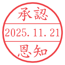 オプションの「電子透かし」をチェックし[生成]すると、見た目には分からないように、UNIXタイムスタンプを識別情報としてPNG形式の日付印に埋め込みます。 日付スタンプメーカーの使い方「部署」「名前」は最大8文字まで入力が可能です。「スタンプの色」を選択し、[生成]ボタン押下で印影画像が更新され、背景を透明に設定したPNG形式とPDF形式の印影画像がリンクからダウンロードできます。 オプションの「電子透かし」は、その性格上日付印ととても相性の良い付加サービスです。 別ページの「タイムスタンプと電子透かし」でも詳しく解説しますが、このオプションを追加することで、日付印が生成された日時に確かにその印が存在していることが証明されます。 ![]() 恩知さんの電子印鑑が作れます。社内でのデータ書類閲覧確認用など、認印的な使い方のできる電子印鑑が作れます。 ![]() 古代文字で落款印が作れます。「落款スタンプメーカー」で作品を引き立たせる落款印が作れます。