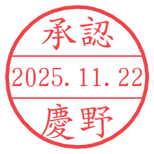 オプションの「電子透かし」をチェックし[生成]すると、見た目には分からないように、UNIXタイムスタンプを識別情報としてPNG形式の日付印に埋め込みます。 日付スタンプメーカーの使い方「部署」「名前」は最大8文字まで入力が可能です。「スタンプの色」を選択し、[生成]ボタン押下で印影画像が更新され、背景を透明に設定したPNG形式とPDF形式の印影画像がリンクからダウンロードできます。 オプションの「電子透かし」は、その性格上日付印ととても相性の良い付加サービスです。 別ページの「タイムスタンプと電子透かし」でも詳しく解説しますが、このオプションを追加することで、日付印が生成された日時に確かにその印が存在していることが証明されます。 ![]() 慶野さんの電子印鑑が作れます。社内でのデータ書類閲覧確認用など、認印的な使い方のできる電子印鑑が作れます。 ![]() 古代文字で落款印が作れます。「落款スタンプメーカー」で作品を引き立たせる落款印が作れます。