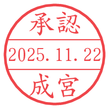 オプションの「電子透かし」をチェックし[生成]すると、見た目には分からないように、UNIXタイムスタンプを識別情報としてPNG形式の日付印に埋め込みます。 日付スタンプメーカーの使い方「部署」「名前」は最大8文字まで入力が可能です。「スタンプの色」を選択し、[生成]ボタン押下で印影画像が更新され、背景を透明に設定したPNG形式とPDF形式の印影画像がリンクからダウンロードできます。 オプションの「電子透かし」は、その性格上日付印ととても相性の良い付加サービスです。 別ページの「タイムスタンプと電子透かし」でも詳しく解説しますが、このオプションを追加することで、日付印が生成された日時に確かにその印が存在していることが証明されます。 ![]() 成宮さんの電子印鑑が作れます。社内でのデータ書類閲覧確認用など、認印的な使い方のできる電子印鑑が作れます。 ![]() 古代文字で落款印が作れます。「落款スタンプメーカー」で作品を引き立たせる落款印が作れます。