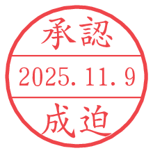 オプションの「電子透かし」をチェックし[生成]すると、見た目には分からないように、UNIXタイムスタンプを識別情報としてPNG形式の日付印に埋め込みます。 日付スタンプメーカーの使い方「部署」「名前」は最大8文字まで入力が可能です。「スタンプの色」を選択し、[生成]ボタン押下で印影画像が更新され、背景を透明に設定したPNG形式とPDF形式の印影画像がリンクからダウンロードできます。 オプションの「電子透かし」は、その性格上日付印ととても相性の良い付加サービスです。 別ページの「タイムスタンプと電子透かし」でも詳しく解説しますが、このオプションを追加することで、日付印が生成された日時に確かにその印が存在していることが証明されます。 ![]() 成迫さんの電子印鑑が作れます。社内でのデータ書類閲覧確認用など、認印的な使い方のできる電子印鑑が作れます。 ![]() 古代文字で落款印が作れます。「落款スタンプメーカー」で作品を引き立たせる落款印が作れます。