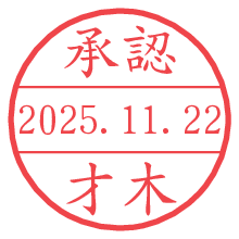 オプションの「電子透かし」をチェックし[生成]すると、見た目には分からないように、UNIXタイムスタンプを識別情報としてPNG形式の日付印に埋め込みます。 日付スタンプメーカーの使い方「部署」「名前」は最大8文字まで入力が可能です。「スタンプの色」を選択し、[生成]ボタン押下で印影画像が更新され、背景を透明に設定したPNG形式とPDF形式の印影画像がリンクからダウンロードできます。 オプションの「電子透かし」は、その性格上日付印ととても相性の良い付加サービスです。 別ページの「タイムスタンプと電子透かし」でも詳しく解説しますが、このオプションを追加することで、日付印が生成された日時に確かにその印が存在していることが証明されます。 ![]() 才木さんの電子印鑑が作れます。社内でのデータ書類閲覧確認用など、認印的な使い方のできる電子印鑑が作れます。 ![]() 古代文字で落款印が作れます。「落款スタンプメーカー」で作品を引き立たせる落款印が作れます。