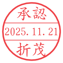 オプションの「電子透かし」をチェックし[生成]すると、見た目には分からないように、UNIXタイムスタンプを識別情報としてPNG形式の日付印に埋め込みます。 日付スタンプメーカーの使い方「部署」「名前」は最大8文字まで入力が可能です。「スタンプの色」を選択し、[生成]ボタン押下で印影画像が更新され、背景を透明に設定したPNG形式とPDF形式の印影画像がリンクからダウンロードできます。 オプションの「電子透かし」は、その性格上日付印ととても相性の良い付加サービスです。 別ページの「タイムスタンプと電子透かし」でも詳しく解説しますが、このオプションを追加することで、日付印が生成された日時に確かにその印が存在していることが証明されます。 ![]() 折茂さんの電子印鑑が作れます。社内でのデータ書類閲覧確認用など、認印的な使い方のできる電子印鑑が作れます。 ![]() 古代文字で落款印が作れます。「落款スタンプメーカー」で作品を引き立たせる落款印が作れます。