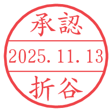 オプションの「電子透かし」をチェックし[生成]すると、見た目には分からないように、UNIXタイムスタンプを識別情報としてPNG形式の日付印に埋め込みます。 日付スタンプメーカーの使い方「部署」「名前」は最大8文字まで入力が可能です。「スタンプの色」を選択し、[生成]ボタン押下で印影画像が更新され、背景を透明に設定したPNG形式とPDF形式の印影画像がリンクからダウンロードできます。 オプションの「電子透かし」は、その性格上日付印ととても相性の良い付加サービスです。 別ページの「タイムスタンプと電子透かし」でも詳しく解説しますが、このオプションを追加することで、日付印が生成された日時に確かにその印が存在していることが証明されます。 ![]() 折谷さんの電子印鑑が作れます。社内でのデータ書類閲覧確認用など、認印的な使い方のできる電子印鑑が作れます。 ![]() 古代文字で落款印が作れます。「落款スタンプメーカー」で作品を引き立たせる落款印が作れます。