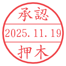 オプションの「電子透かし」をチェックし[生成]すると、見た目には分からないように、UNIXタイムスタンプを識別情報としてPNG形式の日付印に埋め込みます。 日付スタンプメーカーの使い方「部署」「名前」は最大8文字まで入力が可能です。「スタンプの色」を選択し、[生成]ボタン押下で印影画像が更新され、背景を透明に設定したPNG形式とPDF形式の印影画像がリンクからダウンロードできます。 オプションの「電子透かし」は、その性格上日付印ととても相性の良い付加サービスです。 別ページの「タイムスタンプと電子透かし」でも詳しく解説しますが、このオプションを追加することで、日付印が生成された日時に確かにその印が存在していることが証明されます。 ![]() 押木さんの電子印鑑が作れます。社内でのデータ書類閲覧確認用など、認印的な使い方のできる電子印鑑が作れます。 ![]() 古代文字で落款印が作れます。「落款スタンプメーカー」で作品を引き立たせる落款印が作れます。