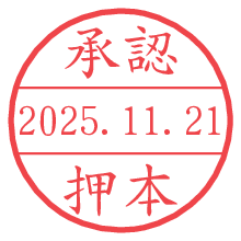 オプションの「電子透かし」をチェックし[生成]すると、見た目には分からないように、UNIXタイムスタンプを識別情報としてPNG形式の日付印に埋め込みます。 日付スタンプメーカーの使い方「部署」「名前」は最大8文字まで入力が可能です。「スタンプの色」を選択し、[生成]ボタン押下で印影画像が更新され、背景を透明に設定したPNG形式とPDF形式の印影画像がリンクからダウンロードできます。 オプションの「電子透かし」は、その性格上日付印ととても相性の良い付加サービスです。 別ページの「タイムスタンプと電子透かし」でも詳しく解説しますが、このオプションを追加することで、日付印が生成された日時に確かにその印が存在していることが証明されます。 ![]() 押本さんの電子印鑑が作れます。社内でのデータ書類閲覧確認用など、認印的な使い方のできる電子印鑑が作れます。 ![]() 古代文字で落款印が作れます。「落款スタンプメーカー」で作品を引き立たせる落款印が作れます。