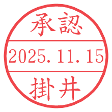 オプションの「電子透かし」をチェックし[生成]すると、見た目には分からないように、UNIXタイムスタンプを識別情報としてPNG形式の日付印に埋め込みます。 日付スタンプメーカーの使い方「部署」「名前」は最大8文字まで入力が可能です。「スタンプの色」を選択し、[生成]ボタン押下で印影画像が更新され、背景を透明に設定したPNG形式とPDF形式の印影画像がリンクからダウンロードできます。 オプションの「電子透かし」は、その性格上日付印ととても相性の良い付加サービスです。 別ページの「タイムスタンプと電子透かし」でも詳しく解説しますが、このオプションを追加することで、日付印が生成された日時に確かにその印が存在していることが証明されます。 ![]() 掛井さんの電子印鑑が作れます。社内でのデータ書類閲覧確認用など、認印的な使い方のできる電子印鑑が作れます。 ![]() 古代文字で落款印が作れます。「落款スタンプメーカー」で作品を引き立たせる落款印が作れます。