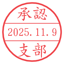 オプションの「電子透かし」をチェックし[生成]すると、見た目には分からないように、UNIXタイムスタンプを識別情報としてPNG形式の日付印に埋め込みます。 日付スタンプメーカーの使い方「部署」「名前」は最大8文字まで入力が可能です。「スタンプの色」を選択し、[生成]ボタン押下で印影画像が更新され、背景を透明に設定したPNG形式とPDF形式の印影画像がリンクからダウンロードできます。 オプションの「電子透かし」は、その性格上日付印ととても相性の良い付加サービスです。 別ページの「タイムスタンプと電子透かし」でも詳しく解説しますが、このオプションを追加することで、日付印が生成された日時に確かにその印が存在していることが証明されます。 ![]() 支部さんの電子印鑑が作れます。社内でのデータ書類閲覧確認用など、認印的な使い方のできる電子印鑑が作れます。 ![]() 古代文字で落款印が作れます。「落款スタンプメーカー」で作品を引き立たせる落款印が作れます。