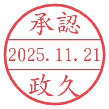 オプションの「電子透かし」をチェックし[生成]すると、見た目には分からないように、UNIXタイムスタンプを識別情報としてPNG形式の日付印に埋め込みます。 日付スタンプメーカーの使い方「部署」「名前」は最大8文字まで入力が可能です。「スタンプの色」を選択し、[生成]ボタン押下で印影画像が更新され、背景を透明に設定したPNG形式とPDF形式の印影画像がリンクからダウンロードできます。 オプションの「電子透かし」は、その性格上日付印ととても相性の良い付加サービスです。 別ページの「タイムスタンプと電子透かし」でも詳しく解説しますが、このオプションを追加することで、日付印が生成された日時に確かにその印が存在していることが証明されます。 ![]() 政久さんの電子印鑑が作れます。社内でのデータ書類閲覧確認用など、認印的な使い方のできる電子印鑑が作れます。 ![]() 古代文字で落款印が作れます。「落款スタンプメーカー」で作品を引き立たせる落款印が作れます。