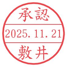 オプションの「電子透かし」をチェックし[生成]すると、見た目には分からないように、UNIXタイムスタンプを識別情報としてPNG形式の日付印に埋め込みます。 日付スタンプメーカーの使い方「部署」「名前」は最大8文字まで入力が可能です。「スタンプの色」を選択し、[生成]ボタン押下で印影画像が更新され、背景を透明に設定したPNG形式とPDF形式の印影画像がリンクからダウンロードできます。 オプションの「電子透かし」は、その性格上日付印ととても相性の良い付加サービスです。 別ページの「タイムスタンプと電子透かし」でも詳しく解説しますが、このオプションを追加することで、日付印が生成された日時に確かにその印が存在していることが証明されます。 ![]() 敷井さんの電子印鑑が作れます。社内でのデータ書類閲覧確認用など、認印的な使い方のできる電子印鑑が作れます。 ![]() 古代文字で落款印が作れます。「落款スタンプメーカー」で作品を引き立たせる落款印が作れます。