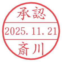 オプションの「電子透かし」をチェックし[生成]すると、見た目には分からないように、UNIXタイムスタンプを識別情報としてPNG形式の日付印に埋め込みます。 日付スタンプメーカーの使い方「部署」「名前」は最大8文字まで入力が可能です。「スタンプの色」を選択し、[生成]ボタン押下で印影画像が更新され、背景を透明に設定したPNG形式とPDF形式の印影画像がリンクからダウンロードできます。 オプションの「電子透かし」は、その性格上日付印ととても相性の良い付加サービスです。 別ページの「タイムスタンプと電子透かし」でも詳しく解説しますが、このオプションを追加することで、日付印が生成された日時に確かにその印が存在していることが証明されます。 ![]() 斎川さんの電子印鑑が作れます。社内でのデータ書類閲覧確認用など、認印的な使い方のできる電子印鑑が作れます。 ![]() 古代文字で落款印が作れます。「落款スタンプメーカー」で作品を引き立たせる落款印が作れます。