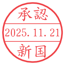オプションの「電子透かし」をチェックし[生成]すると、見た目には分からないように、UNIXタイムスタンプを識別情報としてPNG形式の日付印に埋め込みます。 日付スタンプメーカーの使い方「部署」「名前」は最大8文字まで入力が可能です。「スタンプの色」を選択し、[生成]ボタン押下で印影画像が更新され、背景を透明に設定したPNG形式とPDF形式の印影画像がリンクからダウンロードできます。 オプションの「電子透かし」は、その性格上日付印ととても相性の良い付加サービスです。 別ページの「タイムスタンプと電子透かし」でも詳しく解説しますが、このオプションを追加することで、日付印が生成された日時に確かにその印が存在していることが証明されます。 ![]() 新国さんの電子印鑑が作れます。社内でのデータ書類閲覧確認用など、認印的な使い方のできる電子印鑑が作れます。 ![]() 古代文字で落款印が作れます。「落款スタンプメーカー」で作品を引き立たせる落款印が作れます。