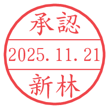 オプションの「電子透かし」をチェックし[生成]すると、見た目には分からないように、UNIXタイムスタンプを識別情報としてPNG形式の日付印に埋め込みます。 日付スタンプメーカーの使い方「部署」「名前」は最大8文字まで入力が可能です。「スタンプの色」を選択し、[生成]ボタン押下で印影画像が更新され、背景を透明に設定したPNG形式とPDF形式の印影画像がリンクからダウンロードできます。 オプションの「電子透かし」は、その性格上日付印ととても相性の良い付加サービスです。 別ページの「タイムスタンプと電子透かし」でも詳しく解説しますが、このオプションを追加することで、日付印が生成された日時に確かにその印が存在していることが証明されます。 ![]() 新林さんの電子印鑑が作れます。社内でのデータ書類閲覧確認用など、認印的な使い方のできる電子印鑑が作れます。 ![]() 古代文字で落款印が作れます。「落款スタンプメーカー」で作品を引き立たせる落款印が作れます。
