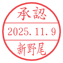 オプションの「電子透かし」をチェックし[生成]すると、見た目には分からないように、UNIXタイムスタンプを識別情報としてPNG形式の日付印に埋め込みます。 日付スタンプメーカーの使い方「部署」「名前」は最大8文字まで入力が可能です。「スタンプの色」を選択し、[生成]ボタン押下で印影画像が更新され、背景を透明に設定したPNG形式とPDF形式の印影画像がリンクからダウンロードできます。 オプションの「電子透かし」は、その性格上日付印ととても相性の良い付加サービスです。 別ページの「タイムスタンプと電子透かし」でも詳しく解説しますが、このオプションを追加することで、日付印が生成された日時に確かにその印が存在していることが証明されます。 ![]() 新野尾さんの電子印鑑が作れます。社内でのデータ書類閲覧確認用など、認印的な使い方のできる電子印鑑が作れます。 ![]() 古代文字で落款印が作れます。「落款スタンプメーカー」で作品を引き立たせる落款印が作れます。