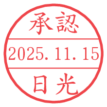 オプションの「電子透かし」をチェックし[生成]すると、見た目には分からないように、UNIXタイムスタンプを識別情報としてPNG形式の日付印に埋め込みます。 日付スタンプメーカーの使い方「部署」「名前」は最大8文字まで入力が可能です。「スタンプの色」を選択し、[生成]ボタン押下で印影画像が更新され、背景を透明に設定したPNG形式とPDF形式の印影画像がリンクからダウンロードできます。 オプションの「電子透かし」は、その性格上日付印ととても相性の良い付加サービスです。 別ページの「タイムスタンプと電子透かし」でも詳しく解説しますが、このオプションを追加することで、日付印が生成された日時に確かにその印が存在していることが証明されます。 ![]() 日光さんの電子印鑑が作れます。社内でのデータ書類閲覧確認用など、認印的な使い方のできる電子印鑑が作れます。 ![]() 古代文字で落款印が作れます。「落款スタンプメーカー」で作品を引き立たせる落款印が作れます。