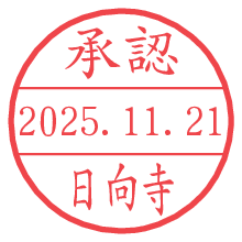 オプションの「電子透かし」をチェックし[生成]すると、見た目には分からないように、UNIXタイムスタンプを識別情報としてPNG形式の日付印に埋め込みます。 日付スタンプメーカーの使い方「部署」「名前」は最大8文字まで入力が可能です。「スタンプの色」を選択し、[生成]ボタン押下で印影画像が更新され、背景を透明に設定したPNG形式とPDF形式の印影画像がリンクからダウンロードできます。 オプションの「電子透かし」は、その性格上日付印ととても相性の良い付加サービスです。 別ページの「タイムスタンプと電子透かし」でも詳しく解説しますが、このオプションを追加することで、日付印が生成された日時に確かにその印が存在していることが証明されます。 ![]() 日向寺さんの電子印鑑が作れます。社内でのデータ書類閲覧確認用など、認印的な使い方のできる電子印鑑が作れます。 ![]() 古代文字で落款印が作れます。「落款スタンプメーカー」で作品を引き立たせる落款印が作れます。