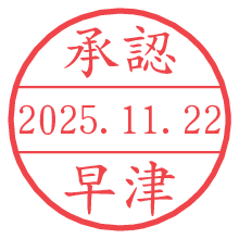 オプションの「電子透かし」をチェックし[生成]すると、見た目には分からないように、UNIXタイムスタンプを識別情報としてPNG形式の日付印に埋め込みます。 日付スタンプメーカーの使い方「部署」「名前」は最大8文字まで入力が可能です。「スタンプの色」を選択し、[生成]ボタン押下で印影画像が更新され、背景を透明に設定したPNG形式とPDF形式の印影画像がリンクからダウンロードできます。 オプションの「電子透かし」は、その性格上日付印ととても相性の良い付加サービスです。 別ページの「タイムスタンプと電子透かし」でも詳しく解説しますが、このオプションを追加することで、日付印が生成された日時に確かにその印が存在していることが証明されます。 ![]() 早津さんの電子印鑑が作れます。社内でのデータ書類閲覧確認用など、認印的な使い方のできる電子印鑑が作れます。 ![]() 古代文字で落款印が作れます。「落款スタンプメーカー」で作品を引き立たせる落款印が作れます。