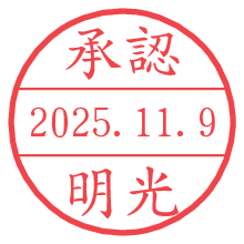 オプションの「電子透かし」をチェックし[生成]すると、見た目には分からないように、UNIXタイムスタンプを識別情報としてPNG形式の日付印に埋め込みます。 日付スタンプメーカーの使い方「部署」「名前」は最大8文字まで入力が可能です。「スタンプの色」を選択し、[生成]ボタン押下で印影画像が更新され、背景を透明に設定したPNG形式とPDF形式の印影画像がリンクからダウンロードできます。 オプションの「電子透かし」は、その性格上日付印ととても相性の良い付加サービスです。 別ページの「タイムスタンプと電子透かし」でも詳しく解説しますが、このオプションを追加することで、日付印が生成された日時に確かにその印が存在していることが証明されます。 ![]() 明光さんの電子印鑑が作れます。社内でのデータ書類閲覧確認用など、認印的な使い方のできる電子印鑑が作れます。 ![]() 古代文字で落款印が作れます。「落款スタンプメーカー」で作品を引き立たせる落款印が作れます。
