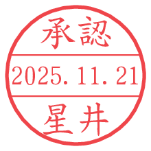 オプションの「電子透かし」をチェックし[生成]すると、見た目には分からないように、UNIXタイムスタンプを識別情報としてPNG形式の日付印に埋め込みます。 日付スタンプメーカーの使い方「部署」「名前」は最大8文字まで入力が可能です。「スタンプの色」を選択し、[生成]ボタン押下で印影画像が更新され、背景を透明に設定したPNG形式とPDF形式の印影画像がリンクからダウンロードできます。 オプションの「電子透かし」は、その性格上日付印ととても相性の良い付加サービスです。 別ページの「タイムスタンプと電子透かし」でも詳しく解説しますが、このオプションを追加することで、日付印が生成された日時に確かにその印が存在していることが証明されます。 ![]() 星井さんの電子印鑑が作れます。社内でのデータ書類閲覧確認用など、認印的な使い方のできる電子印鑑が作れます。 ![]() 古代文字で落款印が作れます。「落款スタンプメーカー」で作品を引き立たせる落款印が作れます。