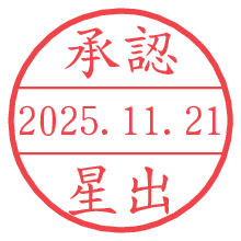 オプションの「電子透かし」をチェックし[生成]すると、見た目には分からないように、UNIXタイムスタンプを識別情報としてPNG形式の日付印に埋め込みます。 日付スタンプメーカーの使い方「部署」「名前」は最大8文字まで入力が可能です。「スタンプの色」を選択し、[生成]ボタン押下で印影画像が更新され、背景を透明に設定したPNG形式とPDF形式の印影画像がリンクからダウンロードできます。 オプションの「電子透かし」は、その性格上日付印ととても相性の良い付加サービスです。 別ページの「タイムスタンプと電子透かし」でも詳しく解説しますが、このオプションを追加することで、日付印が生成された日時に確かにその印が存在していることが証明されます。 ![]() 星出さんの電子印鑑が作れます。社内でのデータ書類閲覧確認用など、認印的な使い方のできる電子印鑑が作れます。 ![]() 古代文字で落款印が作れます。「落款スタンプメーカー」で作品を引き立たせる落款印が作れます。