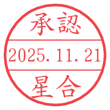 オプションの「電子透かし」をチェックし[生成]すると、見た目には分からないように、UNIXタイムスタンプを識別情報としてPNG形式の日付印に埋め込みます。 日付スタンプメーカーの使い方「部署」「名前」は最大8文字まで入力が可能です。「スタンプの色」を選択し、[生成]ボタン押下で印影画像が更新され、背景を透明に設定したPNG形式とPDF形式の印影画像がリンクからダウンロードできます。 オプションの「電子透かし」は、その性格上日付印ととても相性の良い付加サービスです。 別ページの「タイムスタンプと電子透かし」でも詳しく解説しますが、このオプションを追加することで、日付印が生成された日時に確かにその印が存在していることが証明されます。 ![]() 星合さんの電子印鑑が作れます。社内でのデータ書類閲覧確認用など、認印的な使い方のできる電子印鑑が作れます。 ![]() 古代文字で落款印が作れます。「落款スタンプメーカー」で作品を引き立たせる落款印が作れます。