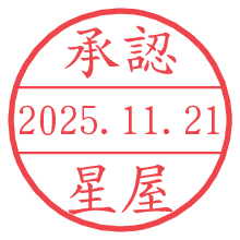 オプションの「電子透かし」をチェックし[生成]すると、見た目には分からないように、UNIXタイムスタンプを識別情報としてPNG形式の日付印に埋め込みます。 日付スタンプメーカーの使い方「部署」「名前」は最大8文字まで入力が可能です。「スタンプの色」を選択し、[生成]ボタン押下で印影画像が更新され、背景を透明に設定したPNG形式とPDF形式の印影画像がリンクからダウンロードできます。 オプションの「電子透かし」は、その性格上日付印ととても相性の良い付加サービスです。 別ページの「タイムスタンプと電子透かし」でも詳しく解説しますが、このオプションを追加することで、日付印が生成された日時に確かにその印が存在していることが証明されます。 ![]() 星屋さんの電子印鑑が作れます。社内でのデータ書類閲覧確認用など、認印的な使い方のできる電子印鑑が作れます。 ![]() 古代文字で落款印が作れます。「落款スタンプメーカー」で作品を引き立たせる落款印が作れます。