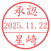 オプションの「電子透かし」をチェックし[生成]すると、見た目には分からないように、UNIXタイムスタンプを識別情報としてPNG形式の日付印に埋め込みます。 日付スタンプメーカーの使い方「部署」「名前」は最大8文字まで入力が可能です。「スタンプの色」を選択し、[生成]ボタン押下で印影画像が更新され、背景を透明に設定したPNG形式とPDF形式の印影画像がリンクからダウンロードできます。 オプションの「電子透かし」は、その性格上日付印ととても相性の良い付加サービスです。 別ページの「タイムスタンプと電子透かし」でも詳しく解説しますが、このオプションを追加することで、日付印が生成された日時に確かにその印が存在していることが証明されます。 ![]() 星崎さんの電子印鑑が作れます。社内でのデータ書類閲覧確認用など、認印的な使い方のできる電子印鑑が作れます。 ![]() 古代文字で落款印が作れます。「落款スタンプメーカー」で作品を引き立たせる落款印が作れます。