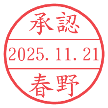オプションの「電子透かし」をチェックし[生成]すると、見た目には分からないように、UNIXタイムスタンプを識別情報としてPNG形式の日付印に埋め込みます。 日付スタンプメーカーの使い方「部署」「名前」は最大8文字まで入力が可能です。「スタンプの色」を選択し、[生成]ボタン押下で印影画像が更新され、背景を透明に設定したPNG形式とPDF形式の印影画像がリンクからダウンロードできます。 オプションの「電子透かし」は、その性格上日付印ととても相性の良い付加サービスです。 別ページの「タイムスタンプと電子透かし」でも詳しく解説しますが、このオプションを追加することで、日付印が生成された日時に確かにその印が存在していることが証明されます。 ![]() 春野さんの電子印鑑が作れます。社内でのデータ書類閲覧確認用など、認印的な使い方のできる電子印鑑が作れます。 ![]() 古代文字で落款印が作れます。「落款スタンプメーカー」で作品を引き立たせる落款印が作れます。