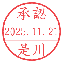 オプションの「電子透かし」をチェックし[生成]すると、見た目には分からないように、UNIXタイムスタンプを識別情報としてPNG形式の日付印に埋め込みます。 日付スタンプメーカーの使い方「部署」「名前」は最大8文字まで入力が可能です。「スタンプの色」を選択し、[生成]ボタン押下で印影画像が更新され、背景を透明に設定したPNG形式とPDF形式の印影画像がリンクからダウンロードできます。 オプションの「電子透かし」は、その性格上日付印ととても相性の良い付加サービスです。 別ページの「タイムスタンプと電子透かし」でも詳しく解説しますが、このオプションを追加することで、日付印が生成された日時に確かにその印が存在していることが証明されます。 ![]() 是川さんの電子印鑑が作れます。社内でのデータ書類閲覧確認用など、認印的な使い方のできる電子印鑑が作れます。 ![]() 古代文字で落款印が作れます。「落款スタンプメーカー」で作品を引き立たせる落款印が作れます。
