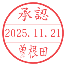 オプションの「電子透かし」をチェックし[生成]すると、見た目には分からないように、UNIXタイムスタンプを識別情報としてPNG形式の日付印に埋め込みます。 日付スタンプメーカーの使い方「部署」「名前」は最大8文字まで入力が可能です。「スタンプの色」を選択し、[生成]ボタン押下で印影画像が更新され、背景を透明に設定したPNG形式とPDF形式の印影画像がリンクからダウンロードできます。 オプションの「電子透かし」は、その性格上日付印ととても相性の良い付加サービスです。 別ページの「タイムスタンプと電子透かし」でも詳しく解説しますが、このオプションを追加することで、日付印が生成された日時に確かにその印が存在していることが証明されます。 ![]() 曽根田さんの電子印鑑が作れます。社内でのデータ書類閲覧確認用など、認印的な使い方のできる電子印鑑が作れます。 ![]() 古代文字で落款印が作れます。「落款スタンプメーカー」で作品を引き立たせる落款印が作れます。