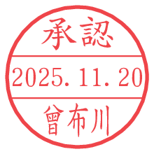 オプションの「電子透かし」をチェックし[生成]すると、見た目には分からないように、UNIXタイムスタンプを識別情報としてPNG形式の日付印に埋め込みます。 日付スタンプメーカーの使い方「部署」「名前」は最大8文字まで入力が可能です。「スタンプの色」を選択し、[生成]ボタン押下で印影画像が更新され、背景を透明に設定したPNG形式とPDF形式の印影画像がリンクからダウンロードできます。 オプションの「電子透かし」は、その性格上日付印ととても相性の良い付加サービスです。 別ページの「タイムスタンプと電子透かし」でも詳しく解説しますが、このオプションを追加することで、日付印が生成された日時に確かにその印が存在していることが証明されます。 ![]() 曾布川さんの電子印鑑が作れます。社内でのデータ書類閲覧確認用など、認印的な使い方のできる電子印鑑が作れます。 ![]() 古代文字で落款印が作れます。「落款スタンプメーカー」で作品を引き立たせる落款印が作れます。