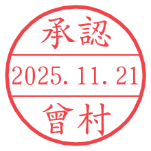 オプションの「電子透かし」をチェックし[生成]すると、見た目には分からないように、UNIXタイムスタンプを識別情報としてPNG形式の日付印に埋め込みます。 日付スタンプメーカーの使い方「部署」「名前」は最大8文字まで入力が可能です。「スタンプの色」を選択し、[生成]ボタン押下で印影画像が更新され、背景を透明に設定したPNG形式とPDF形式の印影画像がリンクからダウンロードできます。 オプションの「電子透かし」は、その性格上日付印ととても相性の良い付加サービスです。 別ページの「タイムスタンプと電子透かし」でも詳しく解説しますが、このオプションを追加することで、日付印が生成された日時に確かにその印が存在していることが証明されます。 ![]() 曾村さんの電子印鑑が作れます。社内でのデータ書類閲覧確認用など、認印的な使い方のできる電子印鑑が作れます。 ![]() 古代文字で落款印が作れます。「落款スタンプメーカー」で作品を引き立たせる落款印が作れます。