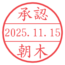 オプションの「電子透かし」をチェックし[生成]すると、見た目には分からないように、UNIXタイムスタンプを識別情報としてPNG形式の日付印に埋め込みます。 日付スタンプメーカーの使い方「部署」「名前」は最大8文字まで入力が可能です。「スタンプの色」を選択し、[生成]ボタン押下で印影画像が更新され、背景を透明に設定したPNG形式とPDF形式の印影画像がリンクからダウンロードできます。 オプションの「電子透かし」は、その性格上日付印ととても相性の良い付加サービスです。 別ページの「タイムスタンプと電子透かし」でも詳しく解説しますが、このオプションを追加することで、日付印が生成された日時に確かにその印が存在していることが証明されます。 ![]() 朝木さんの電子印鑑が作れます。社内でのデータ書類閲覧確認用など、認印的な使い方のできる電子印鑑が作れます。 ![]() 古代文字で落款印が作れます。「落款スタンプメーカー」で作品を引き立たせる落款印が作れます。