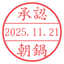 オプションの「電子透かし」をチェックし[生成]すると、見た目には分からないように、UNIXタイムスタンプを識別情報としてPNG形式の日付印に埋め込みます。 日付スタンプメーカーの使い方「部署」「名前」は最大8文字まで入力が可能です。「スタンプの色」を選択し、[生成]ボタン押下で印影画像が更新され、背景を透明に設定したPNG形式とPDF形式の印影画像がリンクからダウンロードできます。 オプションの「電子透かし」は、その性格上日付印ととても相性の良い付加サービスです。 別ページの「タイムスタンプと電子透かし」でも詳しく解説しますが、このオプションを追加することで、日付印が生成された日時に確かにその印が存在していることが証明されます。 ![]() 朝鍋さんの電子印鑑が作れます。社内でのデータ書類閲覧確認用など、認印的な使い方のできる電子印鑑が作れます。 ![]() 古代文字で落款印が作れます。「落款スタンプメーカー」で作品を引き立たせる落款印が作れます。