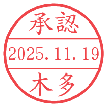 オプションの「電子透かし」をチェックし[生成]すると、見た目には分からないように、UNIXタイムスタンプを識別情報としてPNG形式の日付印に埋め込みます。 日付スタンプメーカーの使い方「部署」「名前」は最大8文字まで入力が可能です。「スタンプの色」を選択し、[生成]ボタン押下で印影画像が更新され、背景を透明に設定したPNG形式とPDF形式の印影画像がリンクからダウンロードできます。 オプションの「電子透かし」は、その性格上日付印ととても相性の良い付加サービスです。 別ページの「タイムスタンプと電子透かし」でも詳しく解説しますが、このオプションを追加することで、日付印が生成された日時に確かにその印が存在していることが証明されます。 ![]() 木多さんの電子印鑑が作れます。社内でのデータ書類閲覧確認用など、認印的な使い方のできる電子印鑑が作れます。 ![]() 古代文字で落款印が作れます。「落款スタンプメーカー」で作品を引き立たせる落款印が作れます。
