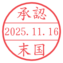 オプションの「電子透かし」をチェックし[生成]すると、見た目には分からないように、UNIXタイムスタンプを識別情報としてPNG形式の日付印に埋め込みます。 日付スタンプメーカーの使い方「部署」「名前」は最大8文字まで入力が可能です。「スタンプの色」を選択し、[生成]ボタン押下で印影画像が更新され、背景を透明に設定したPNG形式とPDF形式の印影画像がリンクからダウンロードできます。 オプションの「電子透かし」は、その性格上日付印ととても相性の良い付加サービスです。 別ページの「タイムスタンプと電子透かし」でも詳しく解説しますが、このオプションを追加することで、日付印が生成された日時に確かにその印が存在していることが証明されます。 ![]() 末国さんの電子印鑑が作れます。社内でのデータ書類閲覧確認用など、認印的な使い方のできる電子印鑑が作れます。 ![]() 古代文字で落款印が作れます。「落款スタンプメーカー」で作品を引き立たせる落款印が作れます。