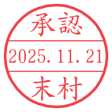 オプションの「電子透かし」をチェックし[生成]すると、見た目には分からないように、UNIXタイムスタンプを識別情報としてPNG形式の日付印に埋め込みます。 日付スタンプメーカーの使い方「部署」「名前」は最大8文字まで入力が可能です。「スタンプの色」を選択し、[生成]ボタン押下で印影画像が更新され、背景を透明に設定したPNG形式とPDF形式の印影画像がリンクからダウンロードできます。 オプションの「電子透かし」は、その性格上日付印ととても相性の良い付加サービスです。 別ページの「タイムスタンプと電子透かし」でも詳しく解説しますが、このオプションを追加することで、日付印が生成された日時に確かにその印が存在していることが証明されます。 ![]() 末村さんの電子印鑑が作れます。社内でのデータ書類閲覧確認用など、認印的な使い方のできる電子印鑑が作れます。 ![]() 古代文字で落款印が作れます。「落款スタンプメーカー」で作品を引き立たせる落款印が作れます。