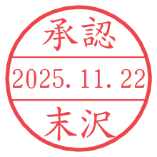 オプションの「電子透かし」をチェックし[生成]すると、見た目には分からないように、UNIXタイムスタンプを識別情報としてPNG形式の日付印に埋め込みます。 日付スタンプメーカーの使い方「部署」「名前」は最大8文字まで入力が可能です。「スタンプの色」を選択し、[生成]ボタン押下で印影画像が更新され、背景を透明に設定したPNG形式とPDF形式の印影画像がリンクからダウンロードできます。 オプションの「電子透かし」は、その性格上日付印ととても相性の良い付加サービスです。 別ページの「タイムスタンプと電子透かし」でも詳しく解説しますが、このオプションを追加することで、日付印が生成された日時に確かにその印が存在していることが証明されます。 ![]() 末沢さんの電子印鑑が作れます。社内でのデータ書類閲覧確認用など、認印的な使い方のできる電子印鑑が作れます。 ![]() 古代文字で落款印が作れます。「落款スタンプメーカー」で作品を引き立たせる落款印が作れます。
