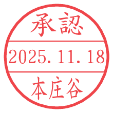 オプションの「電子透かし」をチェックし[生成]すると、見た目には分からないように、UNIXタイムスタンプを識別情報としてPNG形式の日付印に埋め込みます。 日付スタンプメーカーの使い方「部署」「名前」は最大8文字まで入力が可能です。「スタンプの色」を選択し、[生成]ボタン押下で印影画像が更新され、背景を透明に設定したPNG形式とPDF形式の印影画像がリンクからダウンロードできます。 オプションの「電子透かし」は、その性格上日付印ととても相性の良い付加サービスです。 別ページの「タイムスタンプと電子透かし」でも詳しく解説しますが、このオプションを追加することで、日付印が生成された日時に確かにその印が存在していることが証明されます。 ![]() 本庄谷さんの電子印鑑が作れます。社内でのデータ書類閲覧確認用など、認印的な使い方のできる電子印鑑が作れます。 ![]() 古代文字で落款印が作れます。「落款スタンプメーカー」で作品を引き立たせる落款印が作れます。