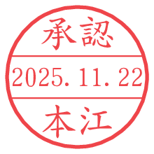 オプションの「電子透かし」をチェックし[生成]すると、見た目には分からないように、UNIXタイムスタンプを識別情報としてPNG形式の日付印に埋め込みます。 日付スタンプメーカーの使い方「部署」「名前」は最大8文字まで入力が可能です。「スタンプの色」を選択し、[生成]ボタン押下で印影画像が更新され、背景を透明に設定したPNG形式とPDF形式の印影画像がリンクからダウンロードできます。 オプションの「電子透かし」は、その性格上日付印ととても相性の良い付加サービスです。 別ページの「タイムスタンプと電子透かし」でも詳しく解説しますが、このオプションを追加することで、日付印が生成された日時に確かにその印が存在していることが証明されます。 ![]() 本江さんの電子印鑑が作れます。社内でのデータ書類閲覧確認用など、認印的な使い方のできる電子印鑑が作れます。 ![]() 古代文字で落款印が作れます。「落款スタンプメーカー」で作品を引き立たせる落款印が作れます。