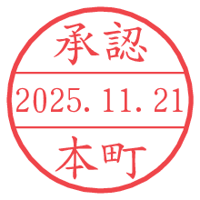 オプションの「電子透かし」をチェックし[生成]すると、見た目には分からないように、UNIXタイムスタンプを識別情報としてPNG形式の日付印に埋め込みます。 日付スタンプメーカーの使い方「部署」「名前」は最大8文字まで入力が可能です。「スタンプの色」を選択し、[生成]ボタン押下で印影画像が更新され、背景を透明に設定したPNG形式とPDF形式の印影画像がリンクからダウンロードできます。 オプションの「電子透かし」は、その性格上日付印ととても相性の良い付加サービスです。 別ページの「タイムスタンプと電子透かし」でも詳しく解説しますが、このオプションを追加することで、日付印が生成された日時に確かにその印が存在していることが証明されます。 ![]() 本町さんの電子印鑑が作れます。社内でのデータ書類閲覧確認用など、認印的な使い方のできる電子印鑑が作れます。 ![]() 古代文字で落款印が作れます。「落款スタンプメーカー」で作品を引き立たせる落款印が作れます。