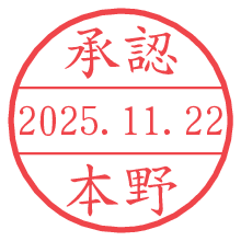 オプションの「電子透かし」をチェックし[生成]すると、見た目には分からないように、UNIXタイムスタンプを識別情報としてPNG形式の日付印に埋め込みます。 日付スタンプメーカーの使い方「部署」「名前」は最大8文字まで入力が可能です。「スタンプの色」を選択し、[生成]ボタン押下で印影画像が更新され、背景を透明に設定したPNG形式とPDF形式の印影画像がリンクからダウンロードできます。 オプションの「電子透かし」は、その性格上日付印ととても相性の良い付加サービスです。 別ページの「タイムスタンプと電子透かし」でも詳しく解説しますが、このオプションを追加することで、日付印が生成された日時に確かにその印が存在していることが証明されます。 ![]() 本野さんの電子印鑑が作れます。社内でのデータ書類閲覧確認用など、認印的な使い方のできる電子印鑑が作れます。 ![]() 古代文字で落款印が作れます。「落款スタンプメーカー」で作品を引き立たせる落款印が作れます。