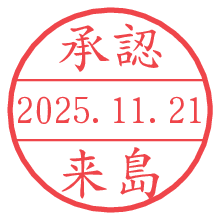 オプションの「電子透かし」をチェックし[生成]すると、見た目には分からないように、UNIXタイムスタンプを識別情報としてPNG形式の日付印に埋め込みます。 日付スタンプメーカーの使い方「部署」「名前」は最大8文字まで入力が可能です。「スタンプの色」を選択し、[生成]ボタン押下で印影画像が更新され、背景を透明に設定したPNG形式とPDF形式の印影画像がリンクからダウンロードできます。 オプションの「電子透かし」は、その性格上日付印ととても相性の良い付加サービスです。 別ページの「タイムスタンプと電子透かし」でも詳しく解説しますが、このオプションを追加することで、日付印が生成された日時に確かにその印が存在していることが証明されます。 ![]() 来島さんの電子印鑑が作れます。社内でのデータ書類閲覧確認用など、認印的な使い方のできる電子印鑑が作れます。 ![]() 古代文字で落款印が作れます。「落款スタンプメーカー」で作品を引き立たせる落款印が作れます。