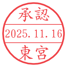 オプションの「電子透かし」をチェックし[生成]すると、見た目には分からないように、UNIXタイムスタンプを識別情報としてPNG形式の日付印に埋め込みます。 日付スタンプメーカーの使い方「部署」「名前」は最大8文字まで入力が可能です。「スタンプの色」を選択し、[生成]ボタン押下で印影画像が更新され、背景を透明に設定したPNG形式とPDF形式の印影画像がリンクからダウンロードできます。 オプションの「電子透かし」は、その性格上日付印ととても相性の良い付加サービスです。 別ページの「タイムスタンプと電子透かし」でも詳しく解説しますが、このオプションを追加することで、日付印が生成された日時に確かにその印が存在していることが証明されます。 ![]() 東宮さんの電子印鑑が作れます。社内でのデータ書類閲覧確認用など、認印的な使い方のできる電子印鑑が作れます。 ![]() 古代文字で落款印が作れます。「落款スタンプメーカー」で作品を引き立たせる落款印が作れます。