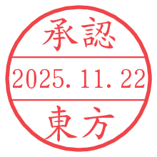 オプションの「電子透かし」をチェックし[生成]すると、見た目には分からないように、UNIXタイムスタンプを識別情報としてPNG形式の日付印に埋め込みます。 日付スタンプメーカーの使い方「部署」「名前」は最大8文字まで入力が可能です。「スタンプの色」を選択し、[生成]ボタン押下で印影画像が更新され、背景を透明に設定したPNG形式とPDF形式の印影画像がリンクからダウンロードできます。 オプションの「電子透かし」は、その性格上日付印ととても相性の良い付加サービスです。 別ページの「タイムスタンプと電子透かし」でも詳しく解説しますが、このオプションを追加することで、日付印が生成された日時に確かにその印が存在していることが証明されます。 ![]() 東方さんの電子印鑑が作れます。社内でのデータ書類閲覧確認用など、認印的な使い方のできる電子印鑑が作れます。 ![]() 古代文字で落款印が作れます。「落款スタンプメーカー」で作品を引き立たせる落款印が作れます。