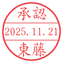 オプションの「電子透かし」をチェックし[生成]すると、見た目には分からないように、UNIXタイムスタンプを識別情報としてPNG形式の日付印に埋め込みます。 日付スタンプメーカーの使い方「部署」「名前」は最大8文字まで入力が可能です。「スタンプの色」を選択し、[生成]ボタン押下で印影画像が更新され、背景を透明に設定したPNG形式とPDF形式の印影画像がリンクからダウンロードできます。 オプションの「電子透かし」は、その性格上日付印ととても相性の良い付加サービスです。 別ページの「タイムスタンプと電子透かし」でも詳しく解説しますが、このオプションを追加することで、日付印が生成された日時に確かにその印が存在していることが証明されます。 ![]() 東藤さんの電子印鑑が作れます。社内でのデータ書類閲覧確認用など、認印的な使い方のできる電子印鑑が作れます。 ![]() 古代文字で落款印が作れます。「落款スタンプメーカー」で作品を引き立たせる落款印が作れます。