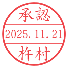 オプションの「電子透かし」をチェックし[生成]すると、見た目には分からないように、UNIXタイムスタンプを識別情報としてPNG形式の日付印に埋め込みます。 日付スタンプメーカーの使い方「部署」「名前」は最大8文字まで入力が可能です。「スタンプの色」を選択し、[生成]ボタン押下で印影画像が更新され、背景を透明に設定したPNG形式とPDF形式の印影画像がリンクからダウンロードできます。 オプションの「電子透かし」は、その性格上日付印ととても相性の良い付加サービスです。 別ページの「タイムスタンプと電子透かし」でも詳しく解説しますが、このオプションを追加することで、日付印が生成された日時に確かにその印が存在していることが証明されます。 ![]() 杵村さんの電子印鑑が作れます。社内でのデータ書類閲覧確認用など、認印的な使い方のできる電子印鑑が作れます。 ![]() 古代文字で落款印が作れます。「落款スタンプメーカー」で作品を引き立たせる落款印が作れます。