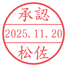 オプションの「電子透かし」をチェックし[生成]すると、見た目には分からないように、UNIXタイムスタンプを識別情報としてPNG形式の日付印に埋め込みます。 日付スタンプメーカーの使い方「部署」「名前」は最大8文字まで入力が可能です。「スタンプの色」を選択し、[生成]ボタン押下で印影画像が更新され、背景を透明に設定したPNG形式とPDF形式の印影画像がリンクからダウンロードできます。 オプションの「電子透かし」は、その性格上日付印ととても相性の良い付加サービスです。 別ページの「タイムスタンプと電子透かし」でも詳しく解説しますが、このオプションを追加することで、日付印が生成された日時に確かにその印が存在していることが証明されます。 ![]() 松佐さんの電子印鑑が作れます。社内でのデータ書類閲覧確認用など、認印的な使い方のできる電子印鑑が作れます。 ![]() 古代文字で落款印が作れます。「落款スタンプメーカー」で作品を引き立たせる落款印が作れます。
