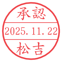 オプションの「電子透かし」をチェックし[生成]すると、見た目には分からないように、UNIXタイムスタンプを識別情報としてPNG形式の日付印に埋め込みます。 日付スタンプメーカーの使い方「部署」「名前」は最大8文字まで入力が可能です。「スタンプの色」を選択し、[生成]ボタン押下で印影画像が更新され、背景を透明に設定したPNG形式とPDF形式の印影画像がリンクからダウンロードできます。 オプションの「電子透かし」は、その性格上日付印ととても相性の良い付加サービスです。 別ページの「タイムスタンプと電子透かし」でも詳しく解説しますが、このオプションを追加することで、日付印が生成された日時に確かにその印が存在していることが証明されます。 ![]() 松吉さんの電子印鑑が作れます。社内でのデータ書類閲覧確認用など、認印的な使い方のできる電子印鑑が作れます。 ![]() 古代文字で落款印が作れます。「落款スタンプメーカー」で作品を引き立たせる落款印が作れます。
